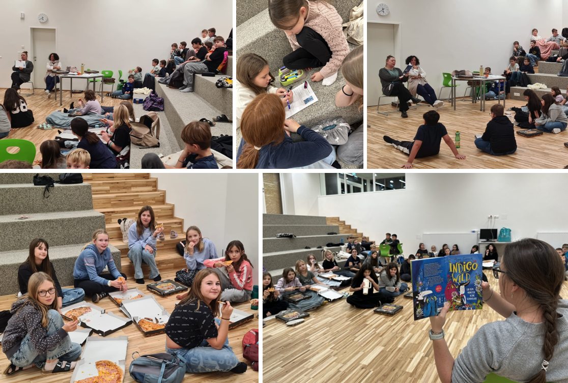 Unser Vorleseabend war ein voller Erfolg: In gemütlicher Atmosphäre lauschten die Kinder gespannt der Geschichte und genossen dabei Pizza und gemeinsame Zeit. Anschließend arbeiteten die Gruppen mit viel Freude an kleinen Aufgaben rund um das Buch.